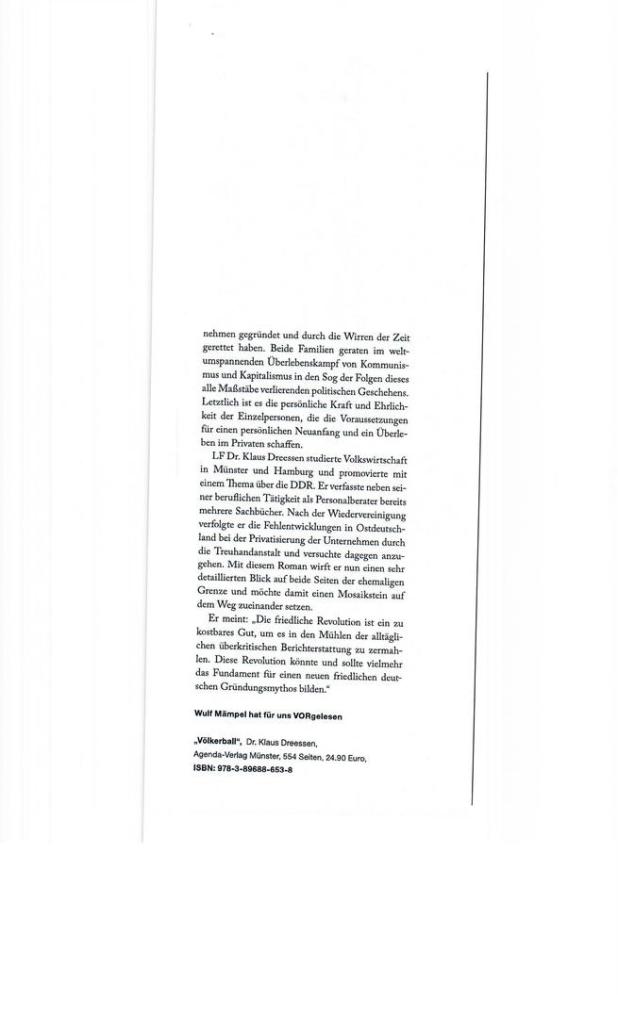unter dem Gesichtspunkt, dass Dreessens schlüssige Darstellung historischer Zusammenhänge an historischen Wahrheiten Maß nimmt, diese gewissenhaft (wenn auch zuweilen in erfrischend